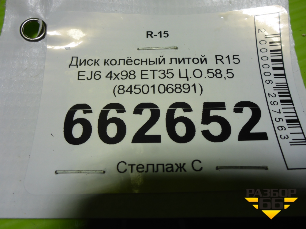 Диск колёсный литой R15 EJ6 4х98 ET35 Ц.О.58,5 (8450106891) в Тюмени