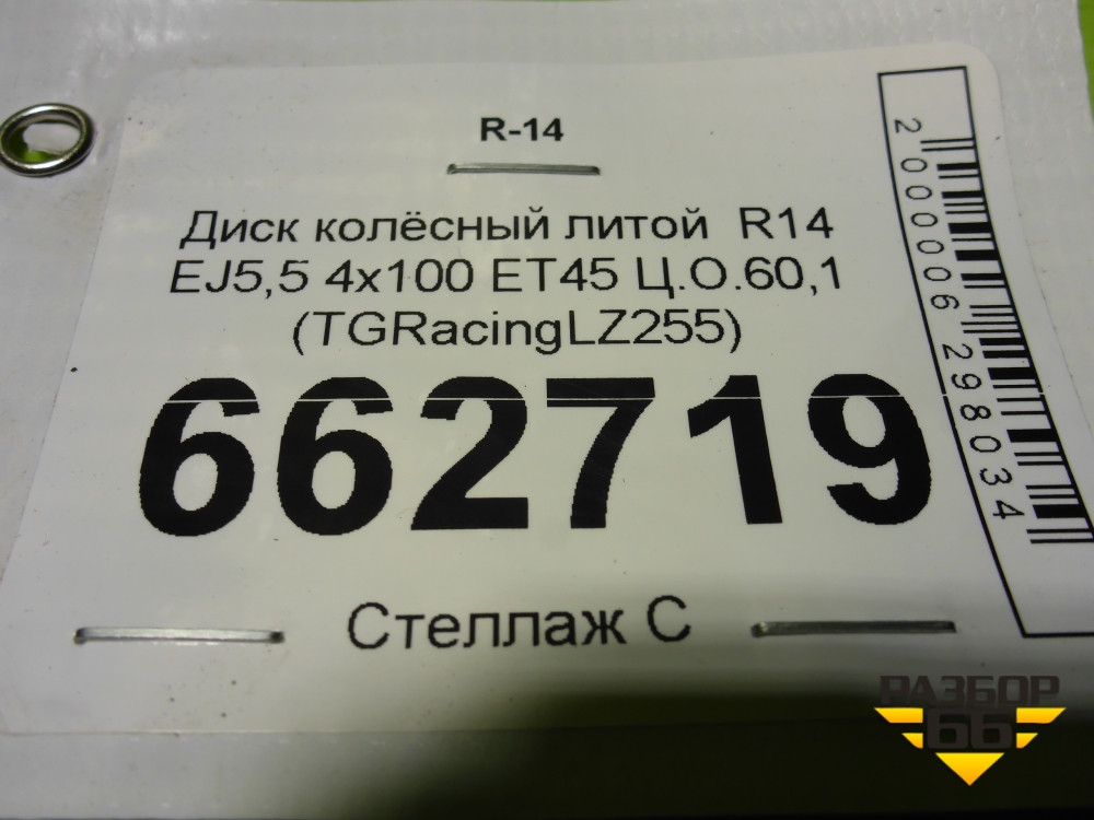 Диск колёсный литой R14 EJ5,5 4х100 ET45 Ц.О.60,1 (TGRacingLZ255) в Тюмени