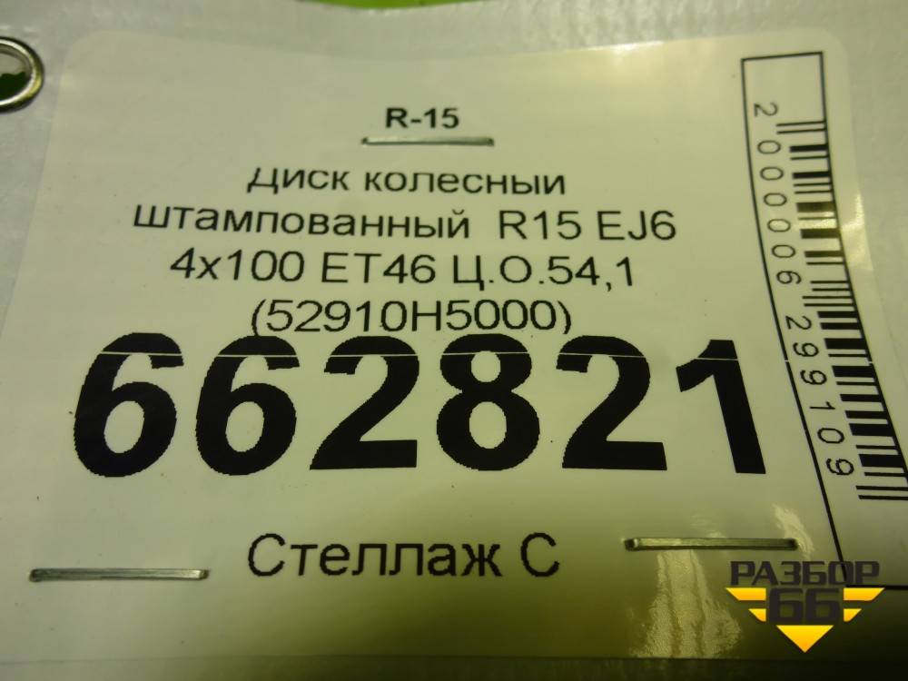 Диск колёсный штампованный R15 EJ6 4х100 ET46 Ц.О.54,1 (52910H5000) в Тюмени