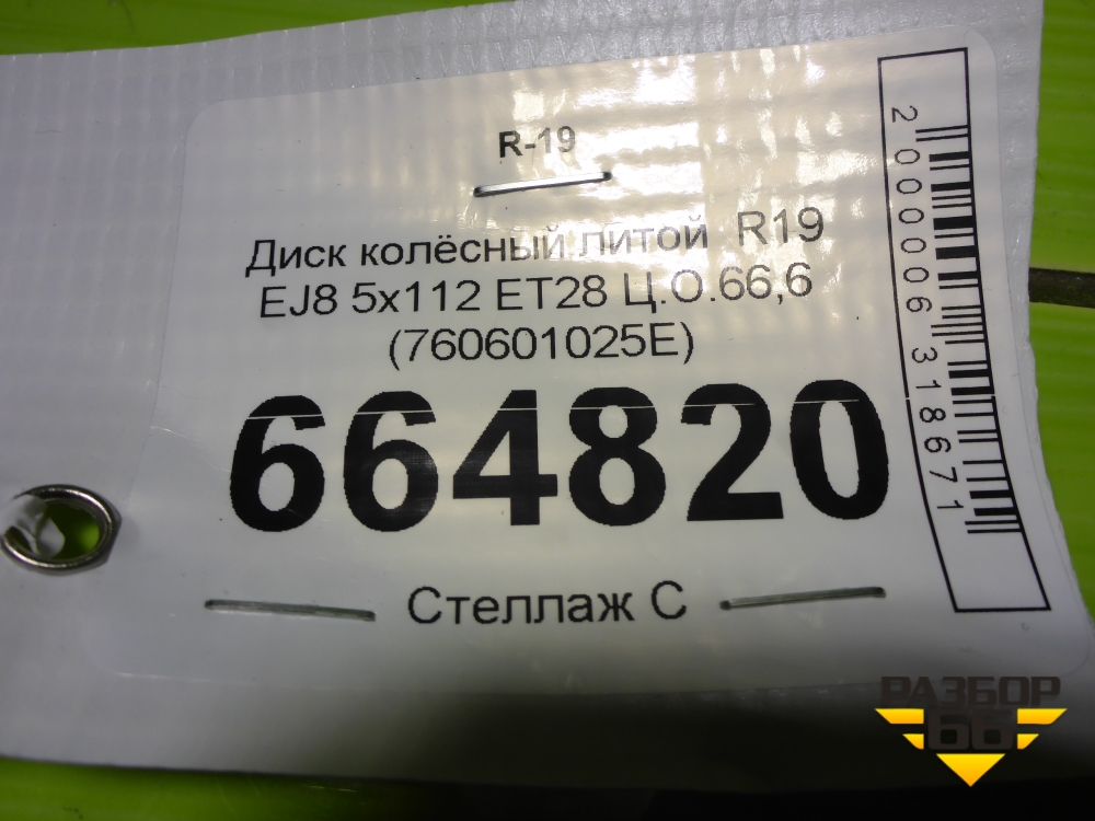 Диск колёсный литой R19 EJ8 5x112 ET28 Ц.О.66,6 (760601025E) в Тюмени