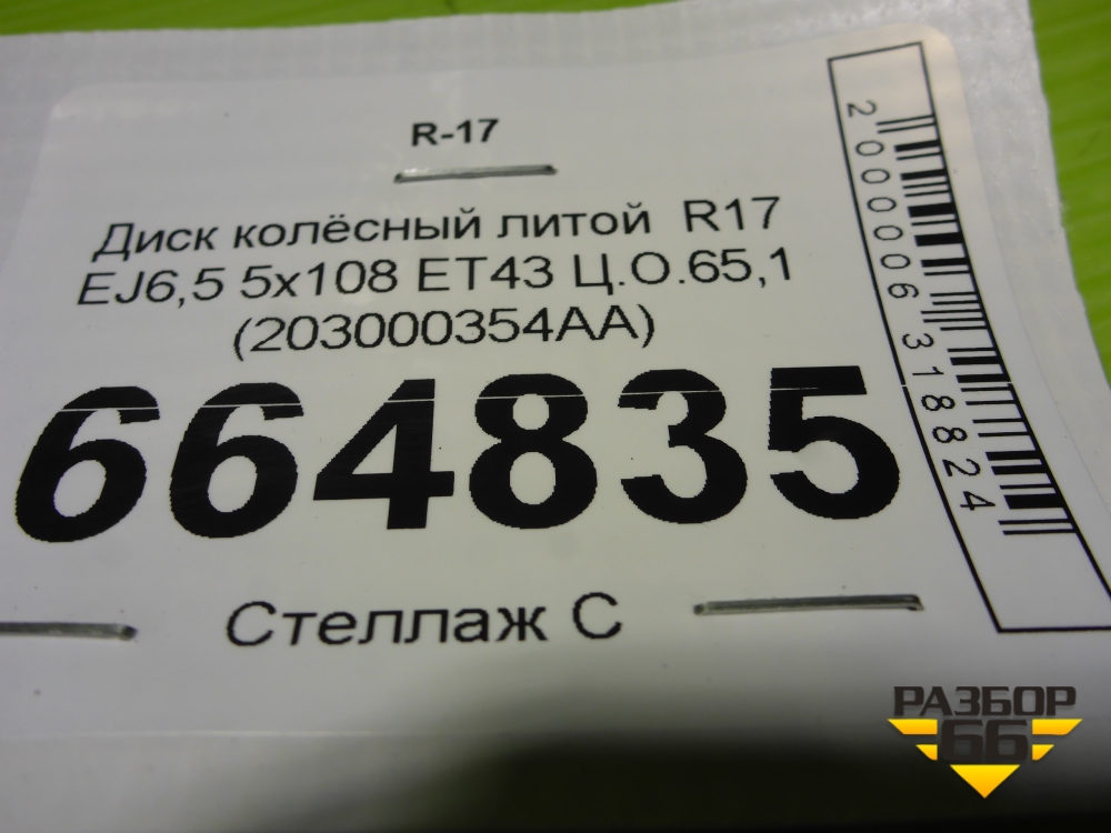 Диск колёсный литой R17 EJ6,5 5x108 ET43 Ц.О.65,1 (203000354AA) в Тюмени