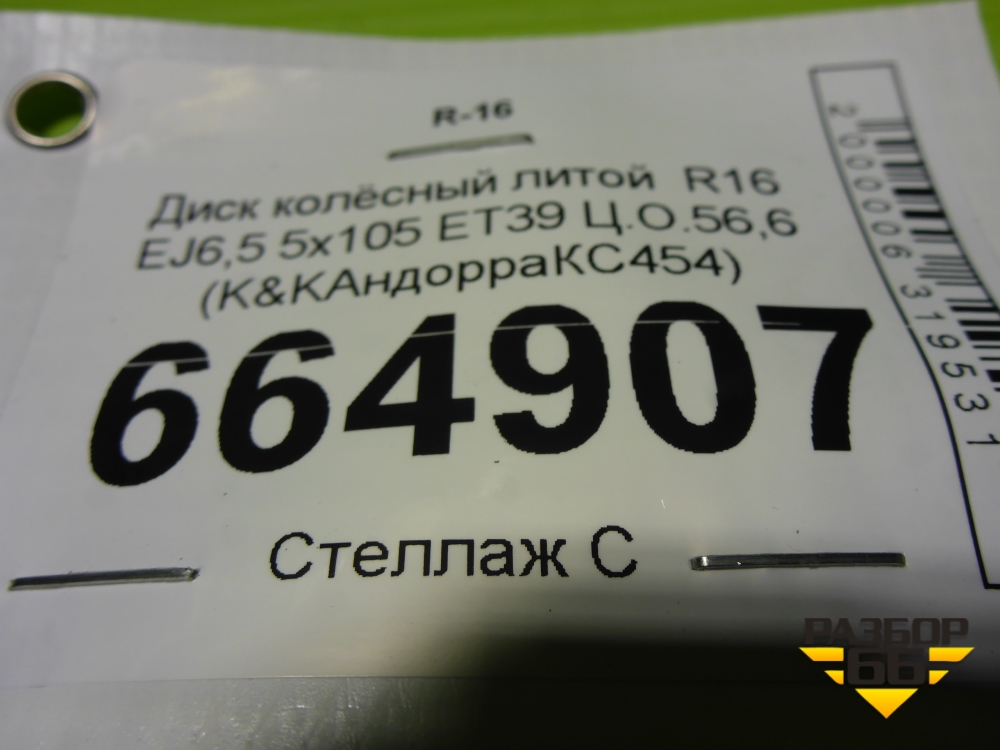 Диск колёсный литой R16 EJ6,5 5x105 ET39 Ц.О.56,6 (K&KАндорраКС454) в Тюмени