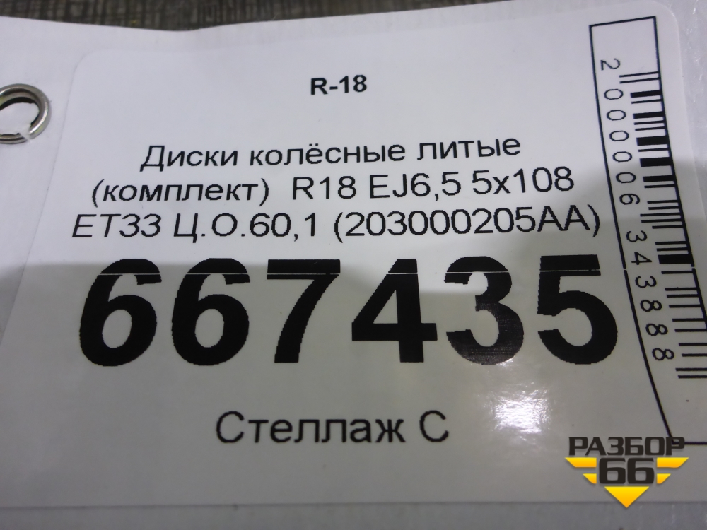 Диски колёсные литые (комплект) R18 EJ6,5 5x108 ET33 Ц.О.60,1 (203000205AA) в Тюмени