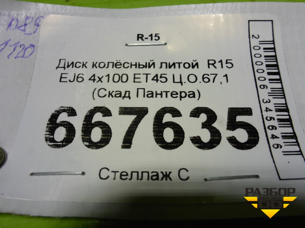 Диск колёсный литой R15 EJ6 4х100 ET45 Ц.О.67,1 (СкадПантера) в Тюмени
