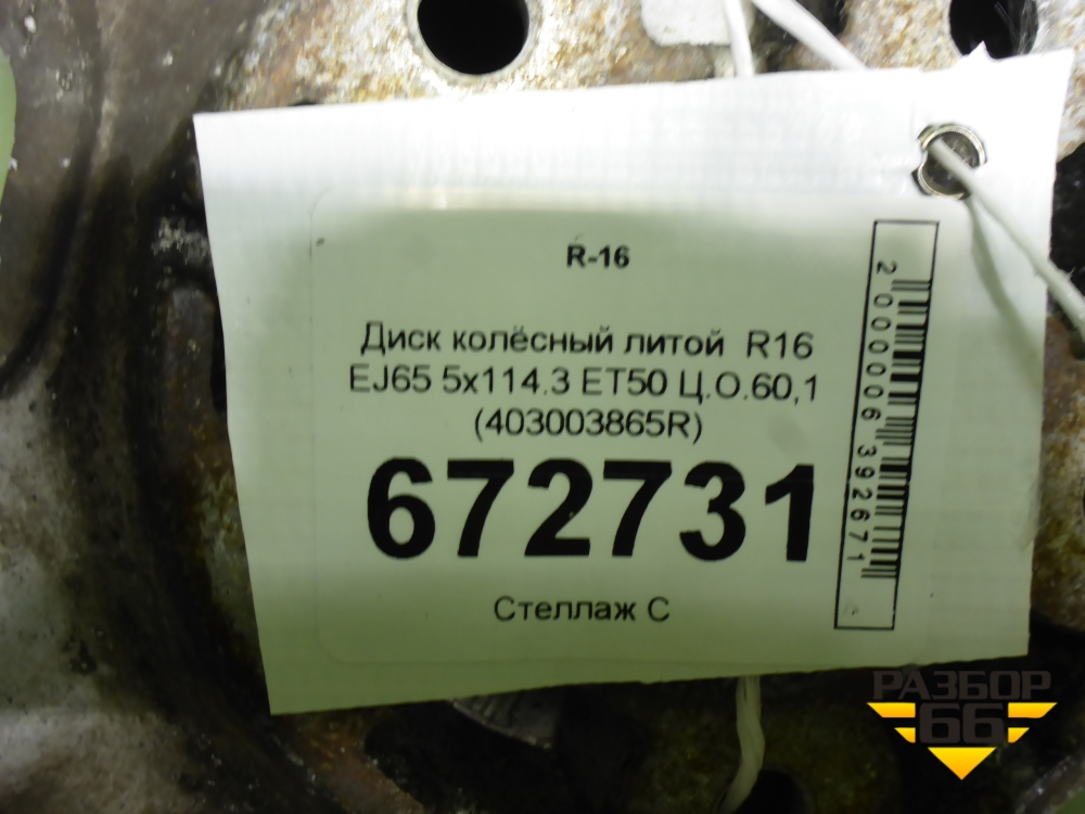 Диск колёсный литой R16 EJ65 5x114.3 ET50 Ц.О.60,1 (403003865R) в Тюмени