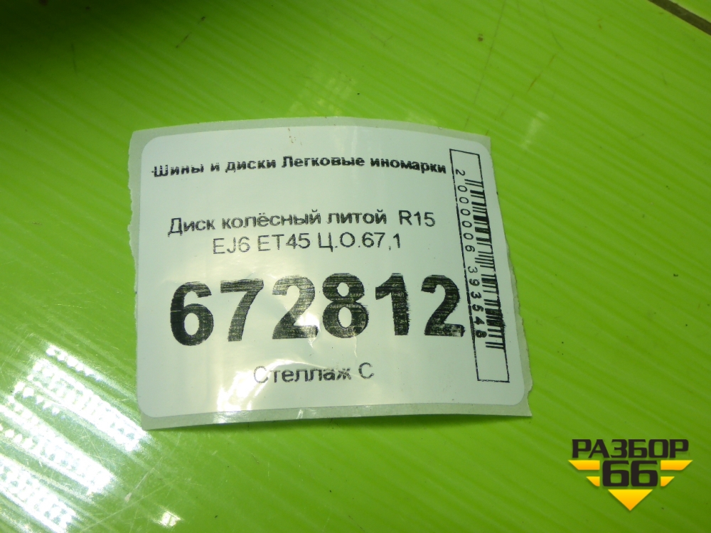 Диск колёсный литой R15 EJ6 4х100 ET45 Ц.О.67,1 в Тюмени