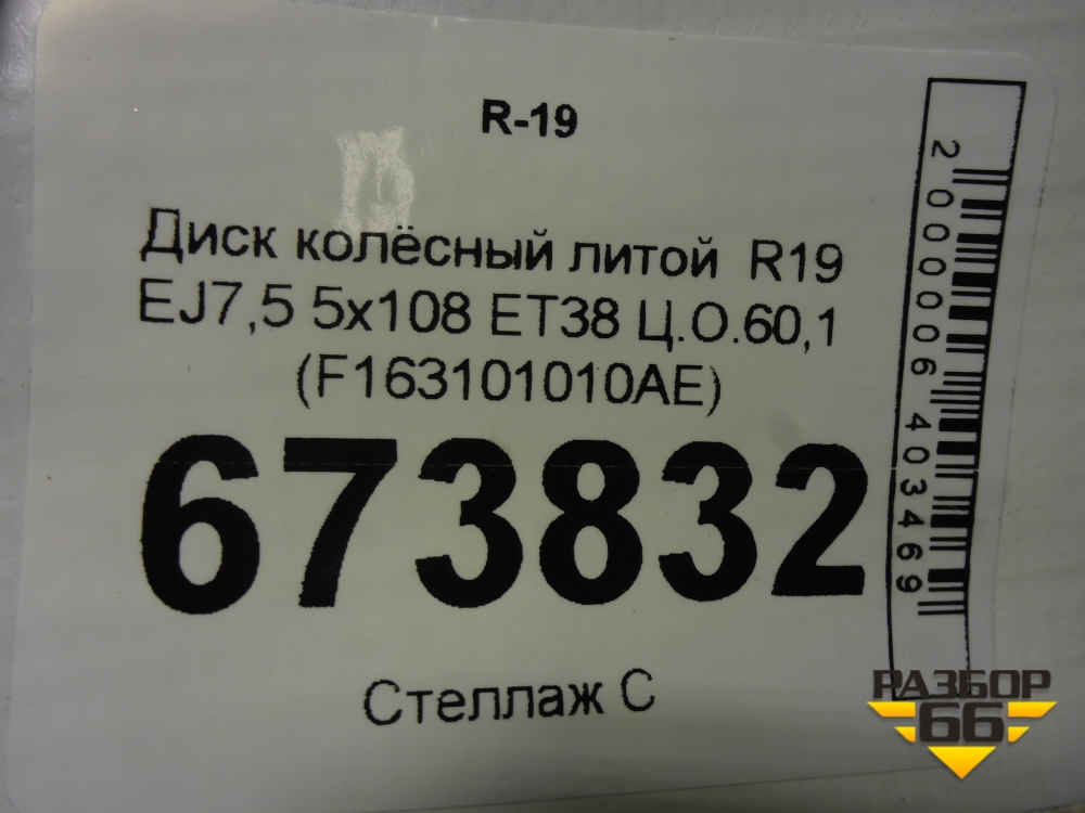 Диск колёсный литой R19 EJ7,5 5x108 ET38 Ц.О.60,1 (F163101010AE) в Тюмени