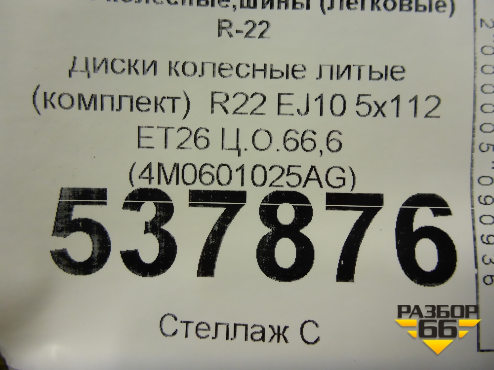 Диски колёсные литые (комплект) R22 EJ10 5x112 ET26 Ц.О.66,6 (4M0601025AG) в Тюмени