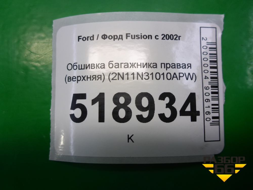 Обшивка стойки задняя верхняя правая (2N11N31010APW) для Ford Fusion с 2002г (Фьюжн) в Тюмени