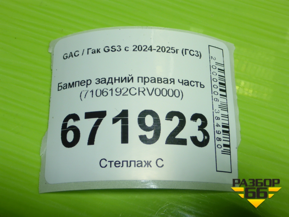 Бампер задний правая часть (7106192CRV0000) для GAC GS3 с 2024-2025г (ГС3) в Тюмени