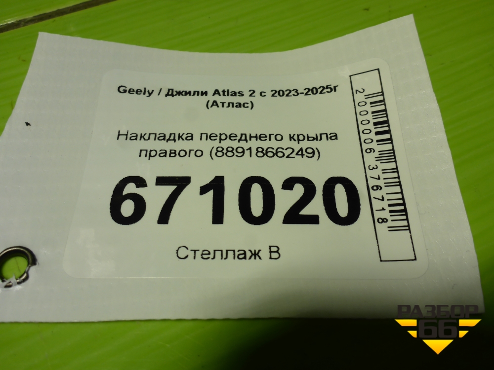 Накладка переднего крыла правого (8891866249) для Geely Atlas 2 с 2023-2025г (Атлас) в Тюмени