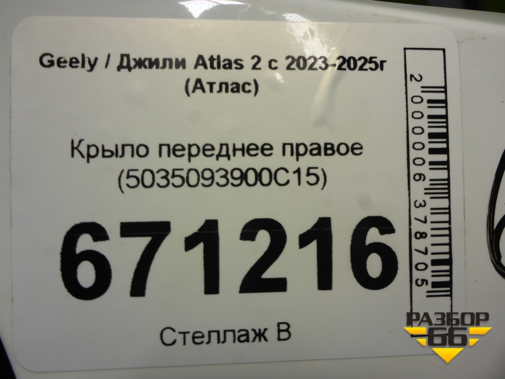 Крыло переднее правое (5035093900C15) для Geely Atlas 2 с 2023-2025г (Атлас) в Тюмени