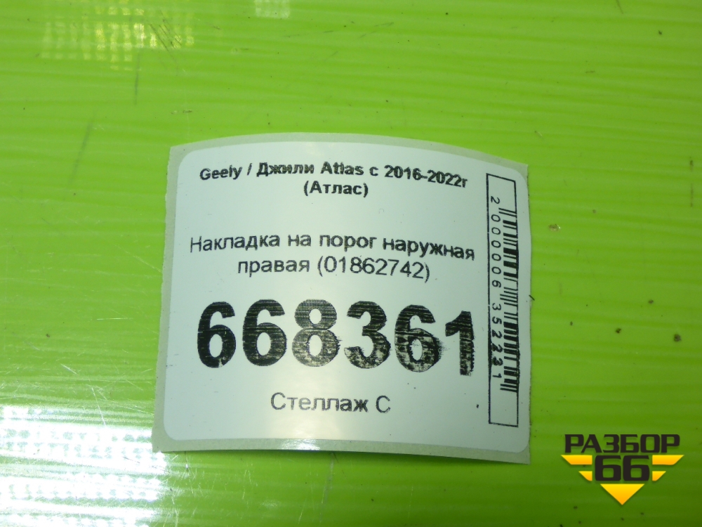 Накладка на порог наружная правая (01862742) для Geely Atlas с 2016-2022г (Атлас) в Тюмени