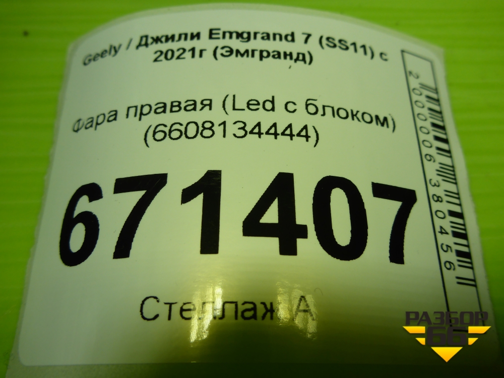 Фара правая (Led с блоком) (6608134444) для Geely Emgrand 7 (SS11) с 2021г (Эмгранд) в Тюмени