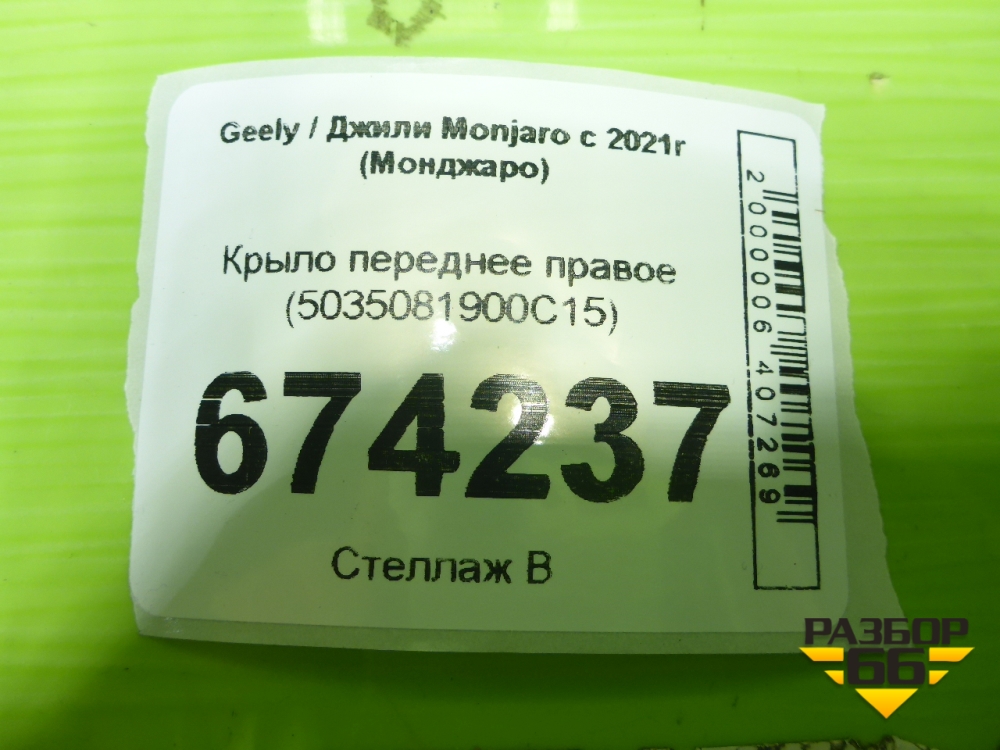 Крыло переднее правое (5035081900С15) для Geely Monjaro с 2021г (Монджаро) в Тюмени