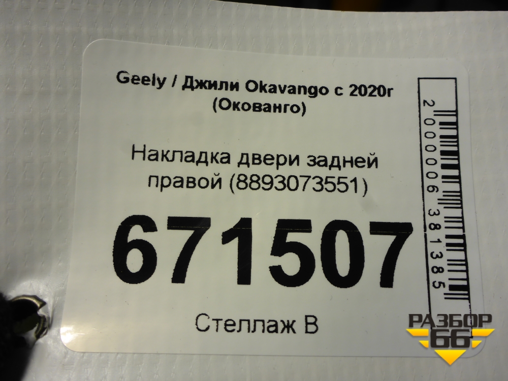 Накладка двери задней правой (8893073551) для Geely Okavango с 2020г (Окованго) в Тюмени