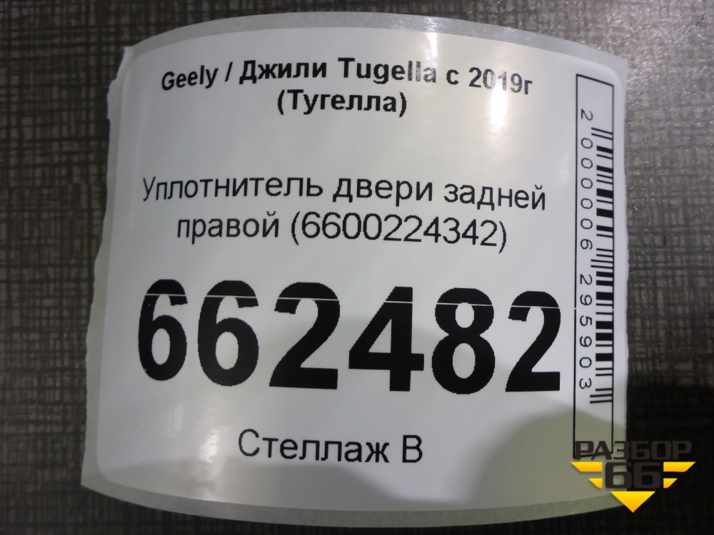Уплотнитель двери задней правой (6600224342) для Geely Tugella с 2019г (Тугелла) в Тюмени