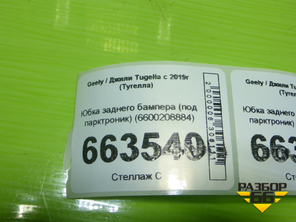 Юбка заднего бампера (под парктроник) (6600208884) для Geely Tugella с 2019г (Тугелла) в Тюмени