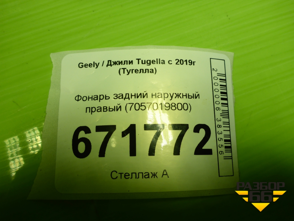 Фонарь задний наружный правый (7057019800) для Geely Tugella с 2019г (Тугелла) в Тюмени