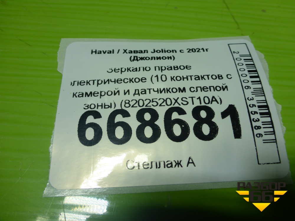 Зеркало правое электрическое (10 контактов с камерой и датчиком слепой зоны) (8202520XST10A) для Haval Jolion с 2021г (Джолион) в Тюмени
