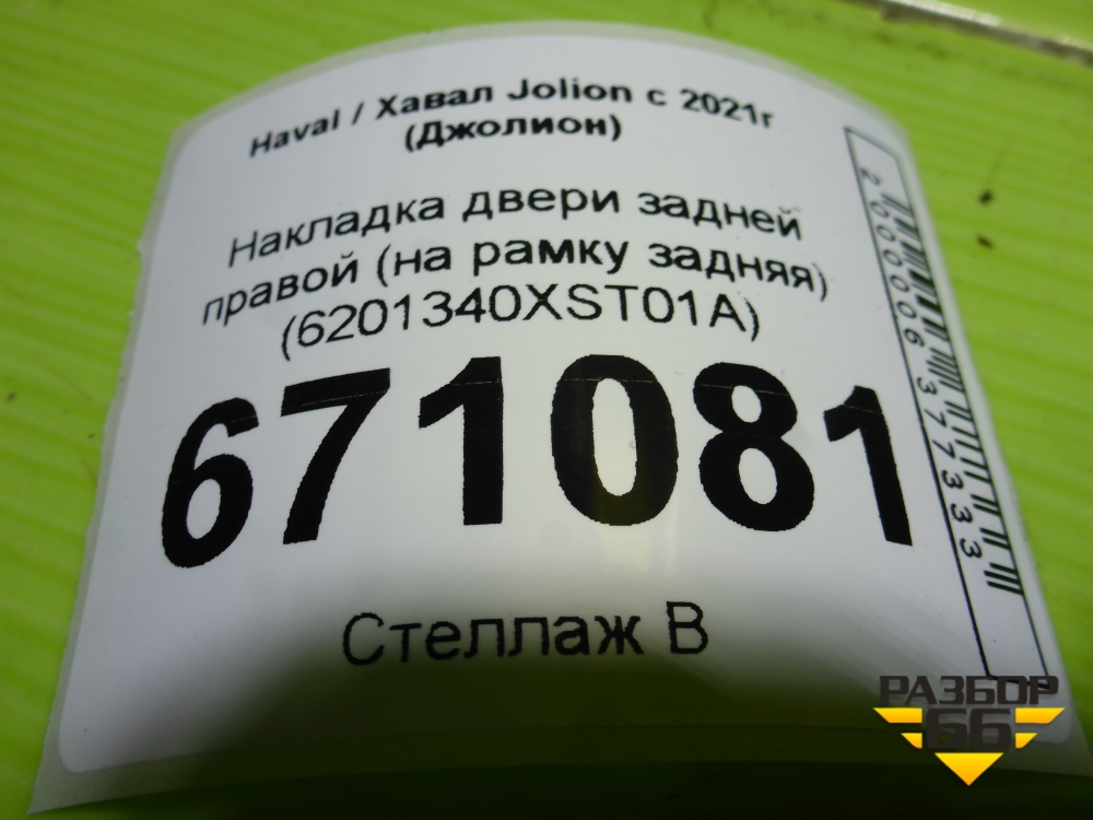 Накладка двери задней правой (на рамку задняя) (6201340XST01A) для Haval Jolion с 2021г (Джолион) в Тюмени