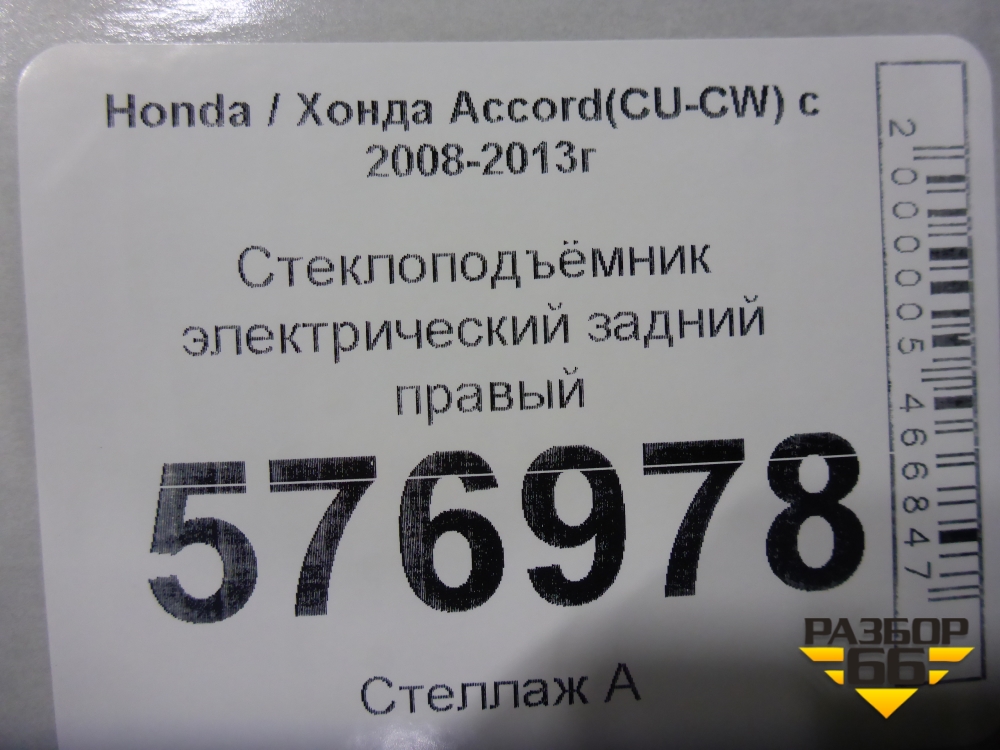 Стеклоподъёмник электрический задний правый для Honda Accord(CU-CW) с 2008-2013г (Аккорд) в Тюмени