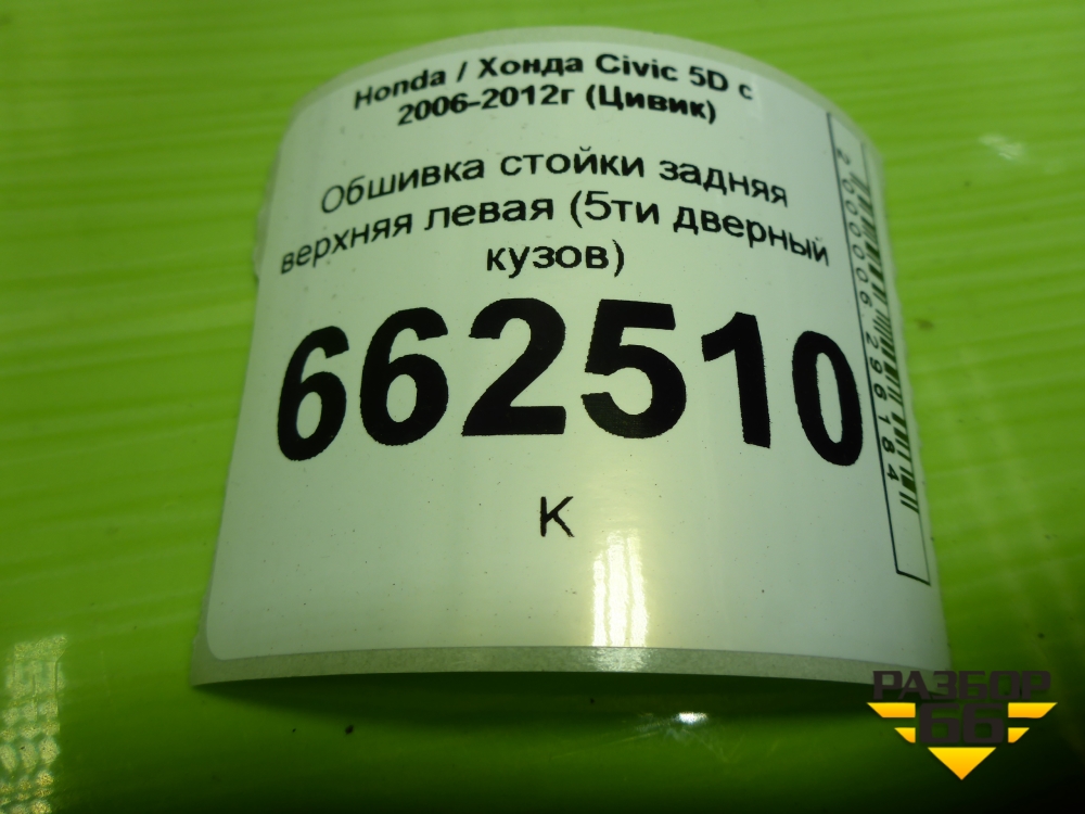 Обшивка стойки задняя верхняя левая (5ти дверный кузов) (84181SMGE021) для Honda Civic 5D с 2005-2011г (Цивик) в Тюмени