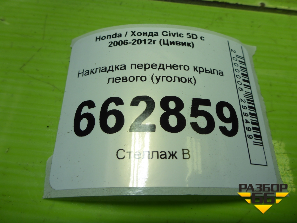 Накладка переднего крыла левого (уголок) (75495SMG) для Honda Civic 5D с 2005-2011г (Цивик) в Тюмени