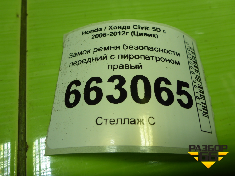 Замок ремня безопасности передний с пиропатроном правый (81416SMGE121) для Honda Civic 5D с 2005-2011г (Цивик) в Тюмени