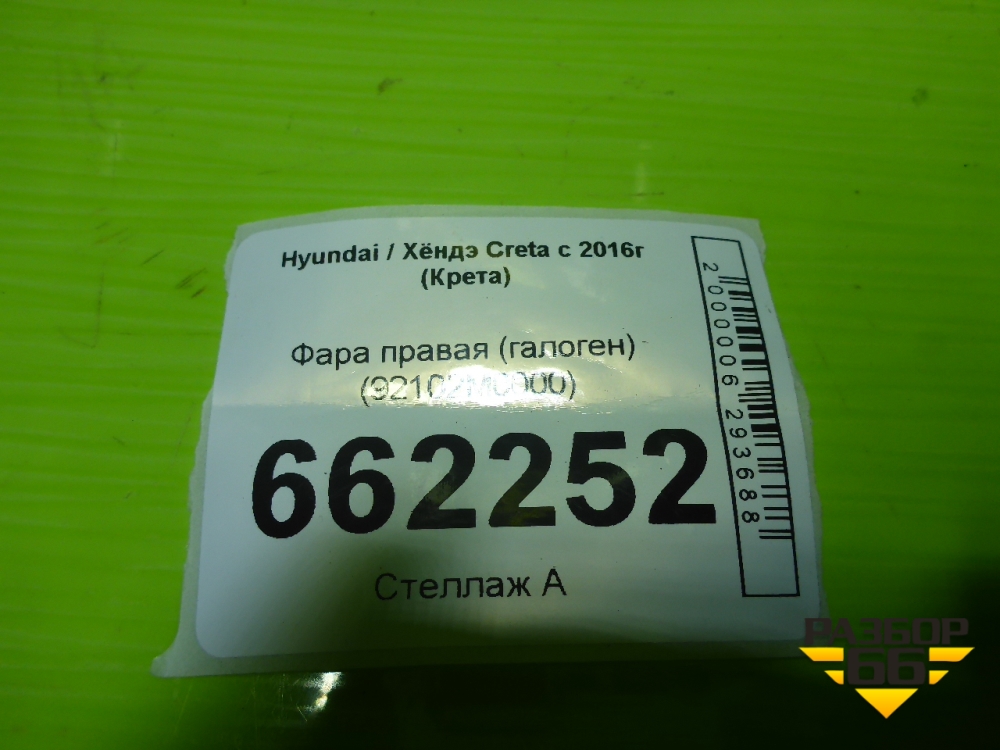 Фара правая (галоген) (92102M0000) для Hyundai Creta с 2016-2021г (Крета) в Тюмени