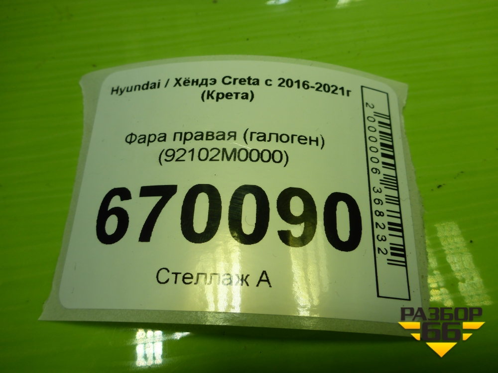 Фара правая (галоген) (92102M0000) для Hyundai Creta с 2016-2021г (Крета) в Тюмени