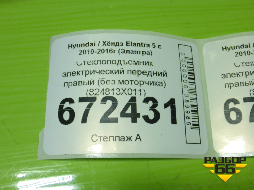 Стеклоподъёмник электрический передний правый (без моторчика) (824813X011) для Hyundai Elantra 5 с 2010-2016г (Элантра) в Тюмени