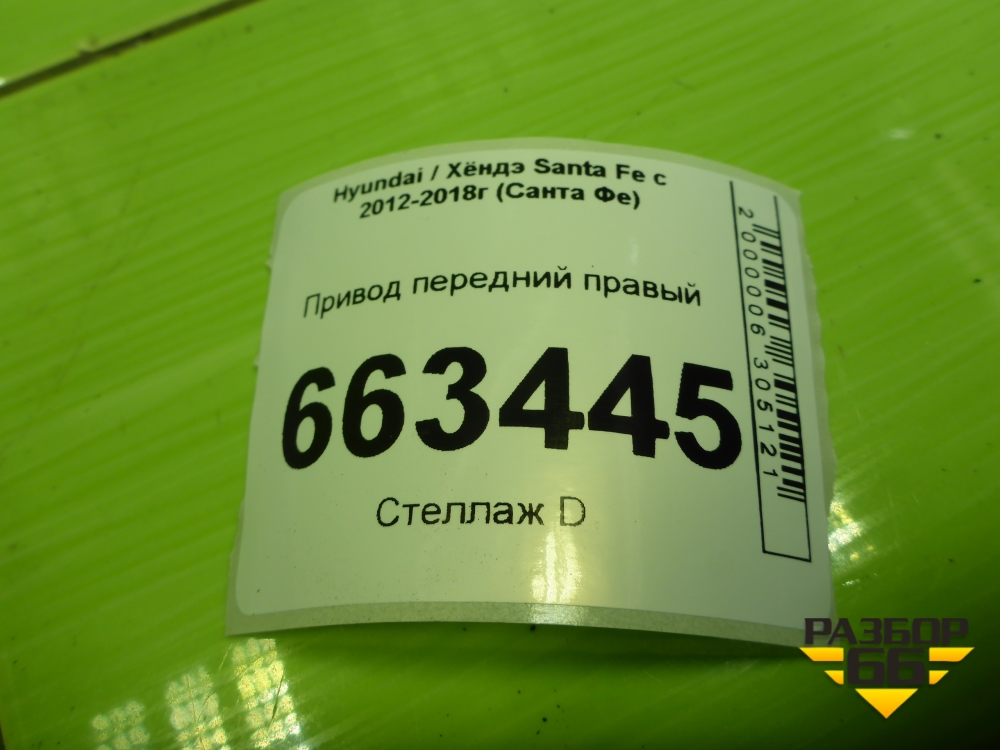 Привод передний правый (2.4л G4KE шлиц наруж-30,внутр-28) (495012W650) для Hyundai Santa Fe с 2012-2018г (Санта Фе) в Тюмени