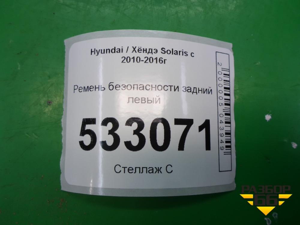 Ремень безопасности задний левый (898104L000) для Hyundai Solaris с 2010-2016г (Солярис) в Тюмени
