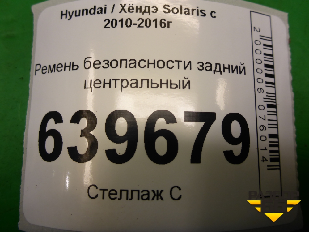 Ремень безопасности задний центральный (898504L000) для Hyundai Solaris с 2010-2016г (Солярис) в Тюмени