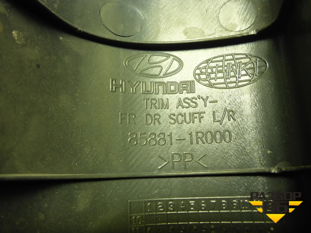 Накладка порога внутренняя переднего правого (858811R000) для Hyundai Solaris с 2010-2016г (Солярис) в Тюмени