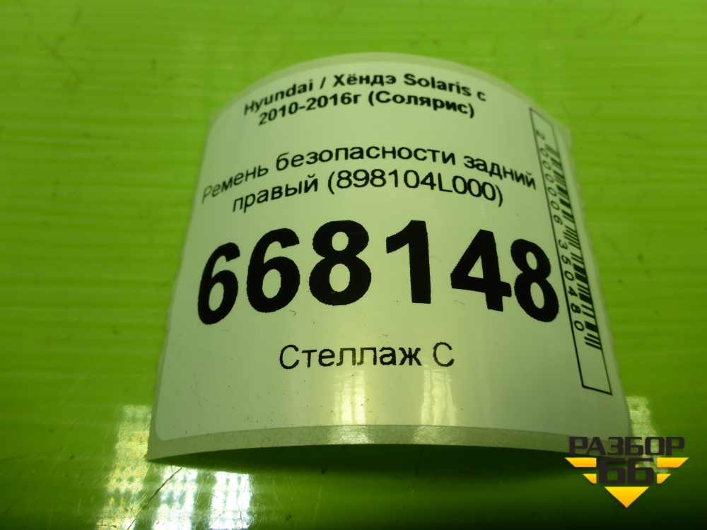 Ремень безопасности задний правый (898104L000) для Hyundai Solaris с 2010-2016г (Солярис) в Тюмени