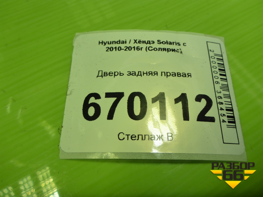 Дверь задняя правая (хетчбэк) (770044L200) для Hyundai Solaris с 2010-2016г (Солярис) в Тюмени