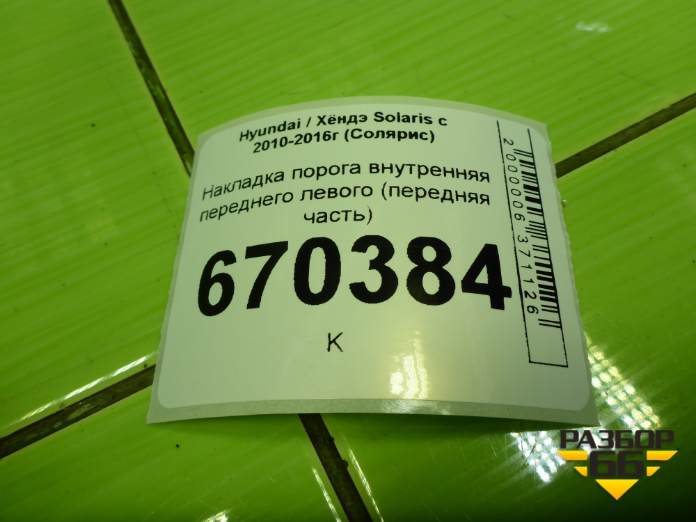 Накладка порога внутренняя переднего левого (передняя часть) (858231R000) для Hyundai Solaris с 2010-2016г (Солярис) в Тюмени