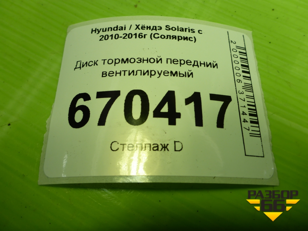 Диск тормозной передний вентилируемый для Hyundai Solaris с 2010-2016г (Солярис) в Тюмени