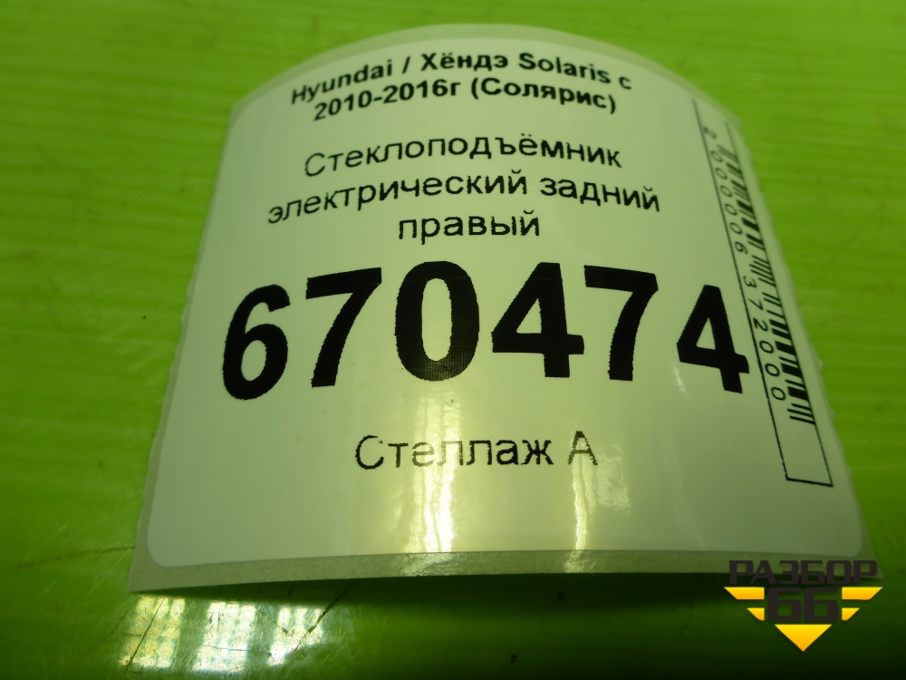 Стеклоподъёмник электрический задний правый для Hyundai Solaris с 2010-2016г (Солярис) в Тюмени