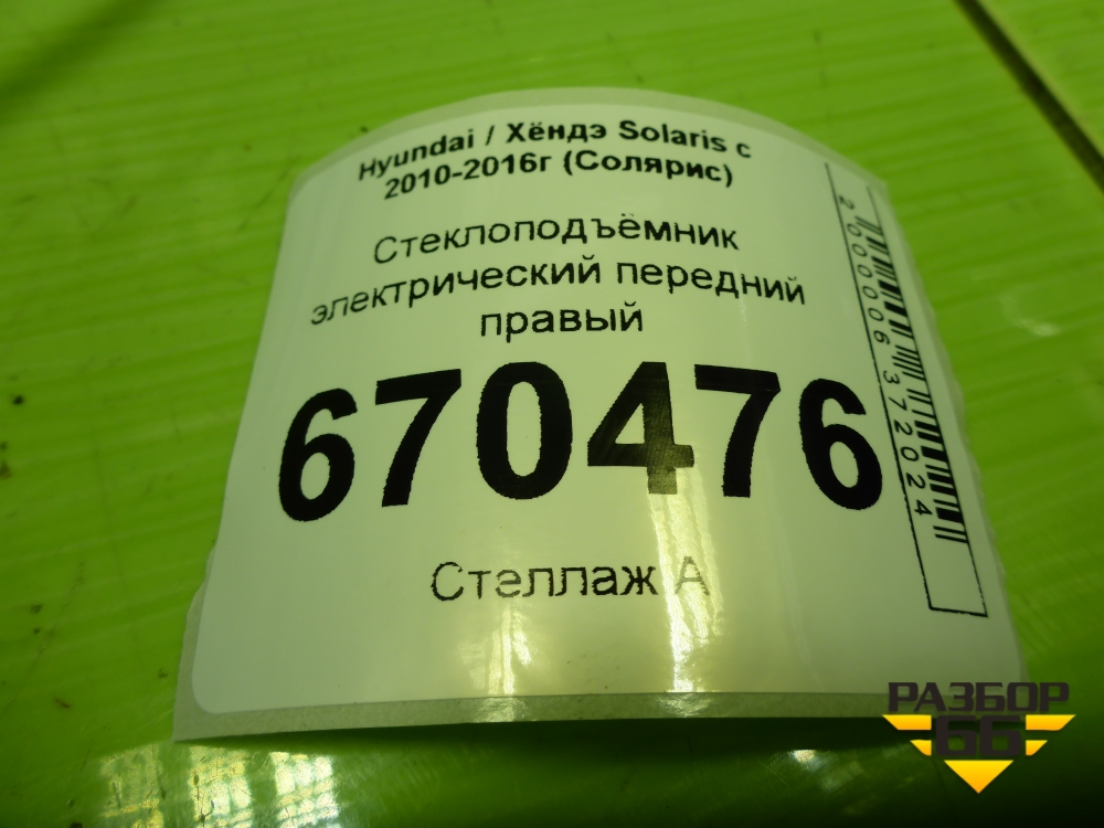 Стеклоподъёмник электрический передний правый для Hyundai Solaris с 2010-2016г (Солярис) в Тюмени