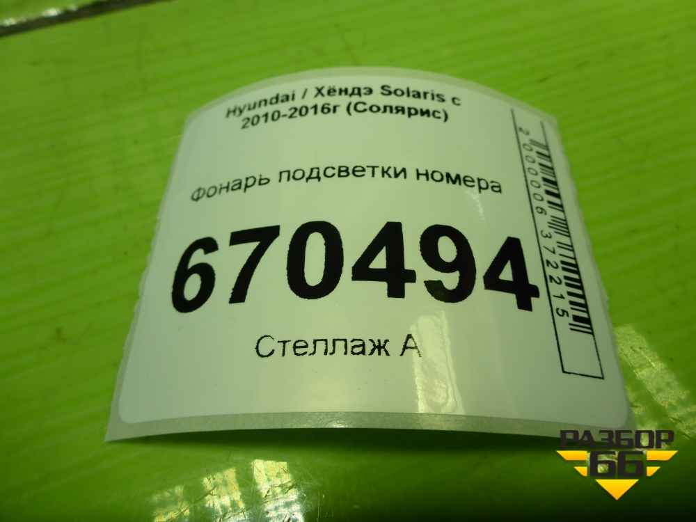 Фонарь подсветки номера (925010U200) для Hyundai Solaris с 2010-2016г (Солярис) в Тюмени
