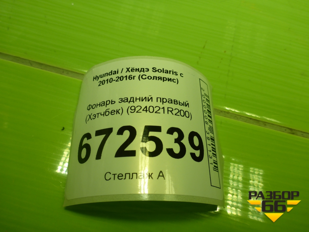 Фонарь задний правый (хэтчбек) (924021R200) для Hyundai Solaris с 2010-2016г (Солярис) в Тюмени