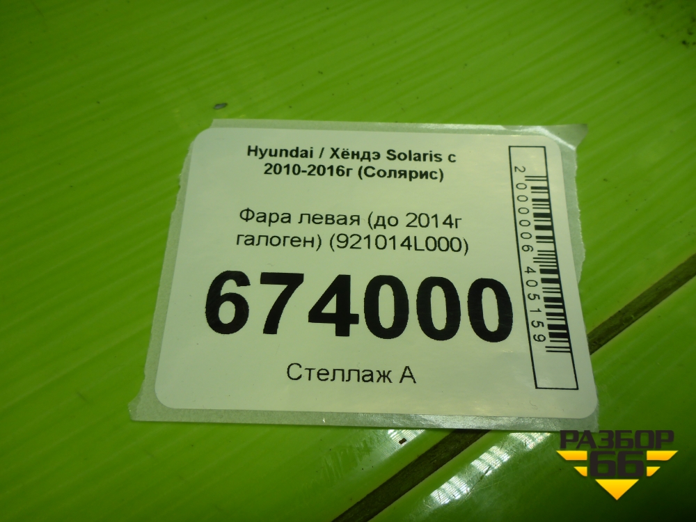 Фара левая (до 2014г галоген) (921014L000) для Hyundai Solaris с 2010-2016г (Солярис) в Тюмени