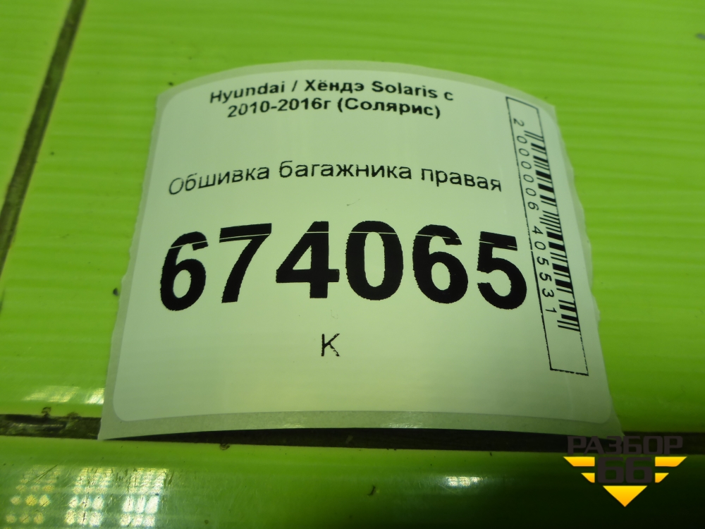 Обшивка багажника правая (хетчбэк) (857404L500) для Hyundai Solaris с 2010-2016г (Солярис) в Тюмени