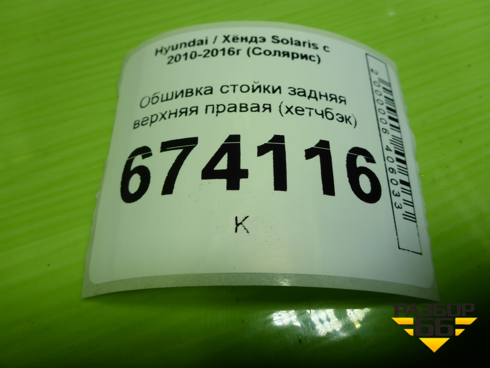 Обшивка стойки задняя верхняя правая (хетчбэк) (858601R500) для Hyundai Solaris с 2010-2016г (Солярис) в Тюмени