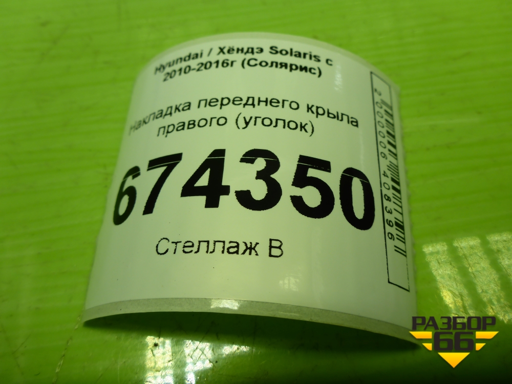 Накладка переднего крыла правого (уголок) (861901R000) для Hyundai Solaris с 2010-2016г (Солярис) в Тюмени