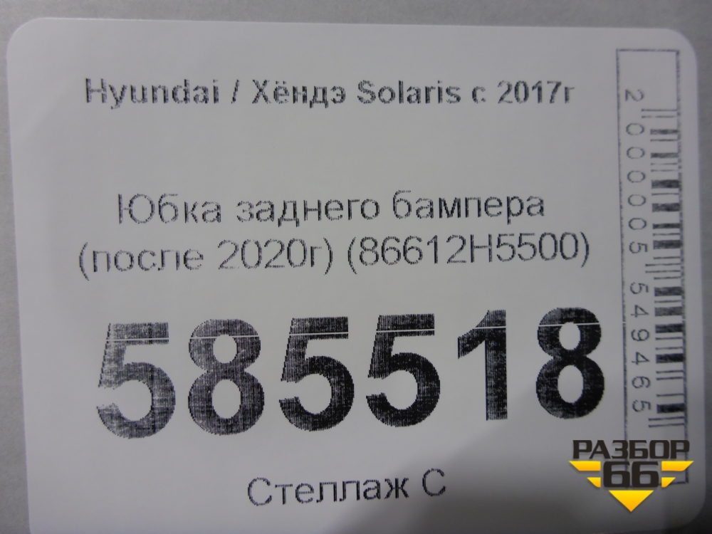 Юбка заднего бампера (после 2020г) (86612H5500) для Hyundai Solaris с 2017г (Солярис) в Тюмени