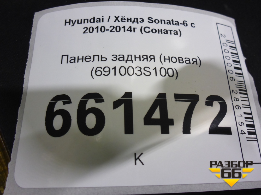 Панель задняя (новая) (691003S100) для Hyundai Sonata-6 с 2010-2014г (Соната) в Тюмени